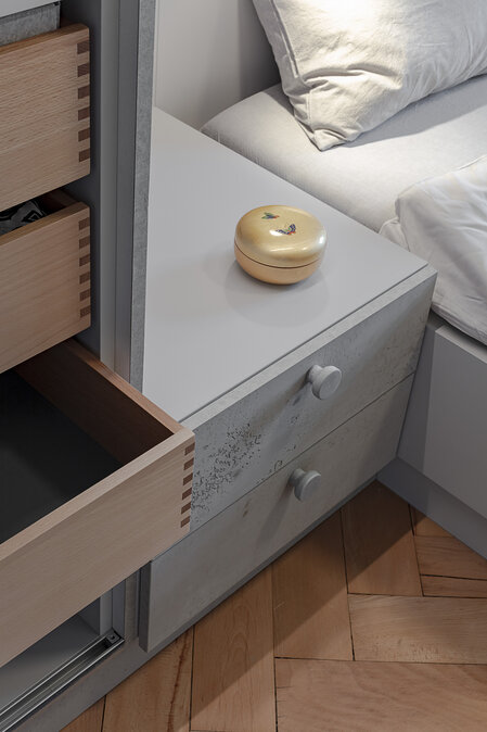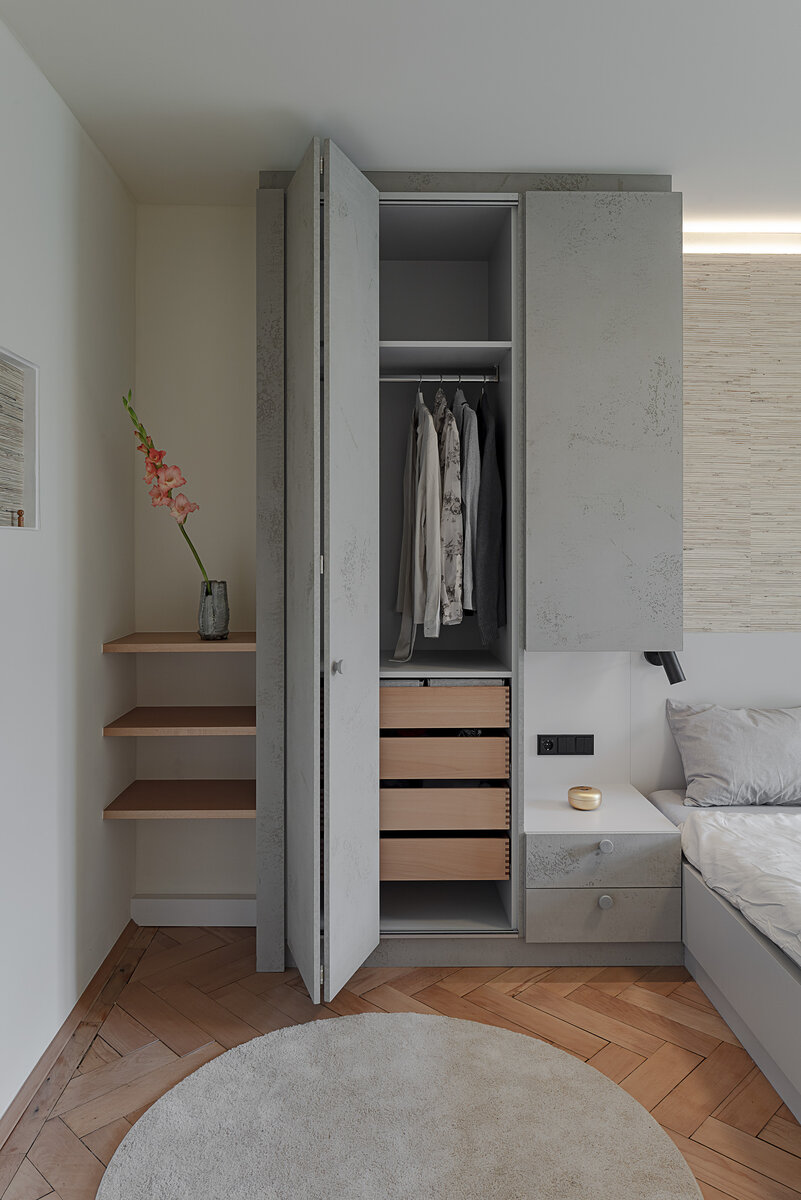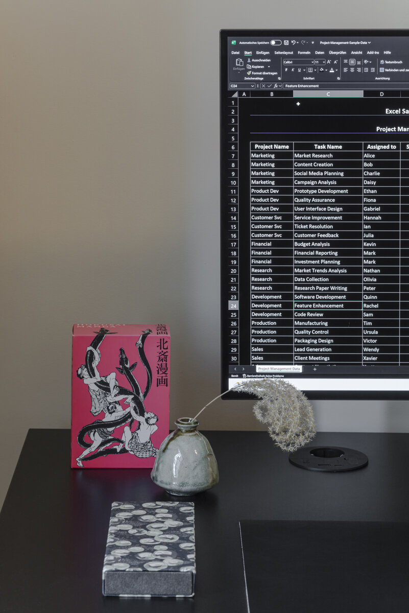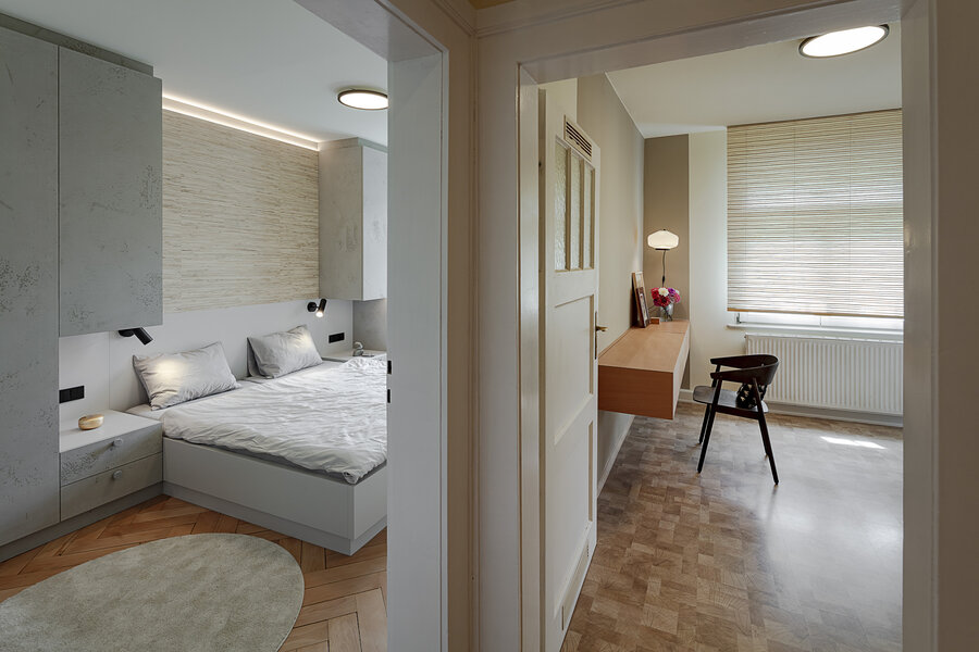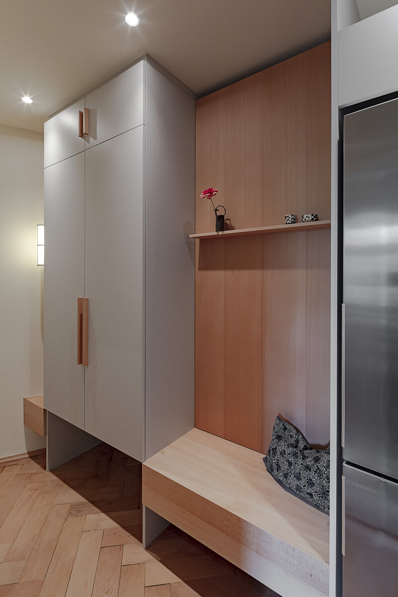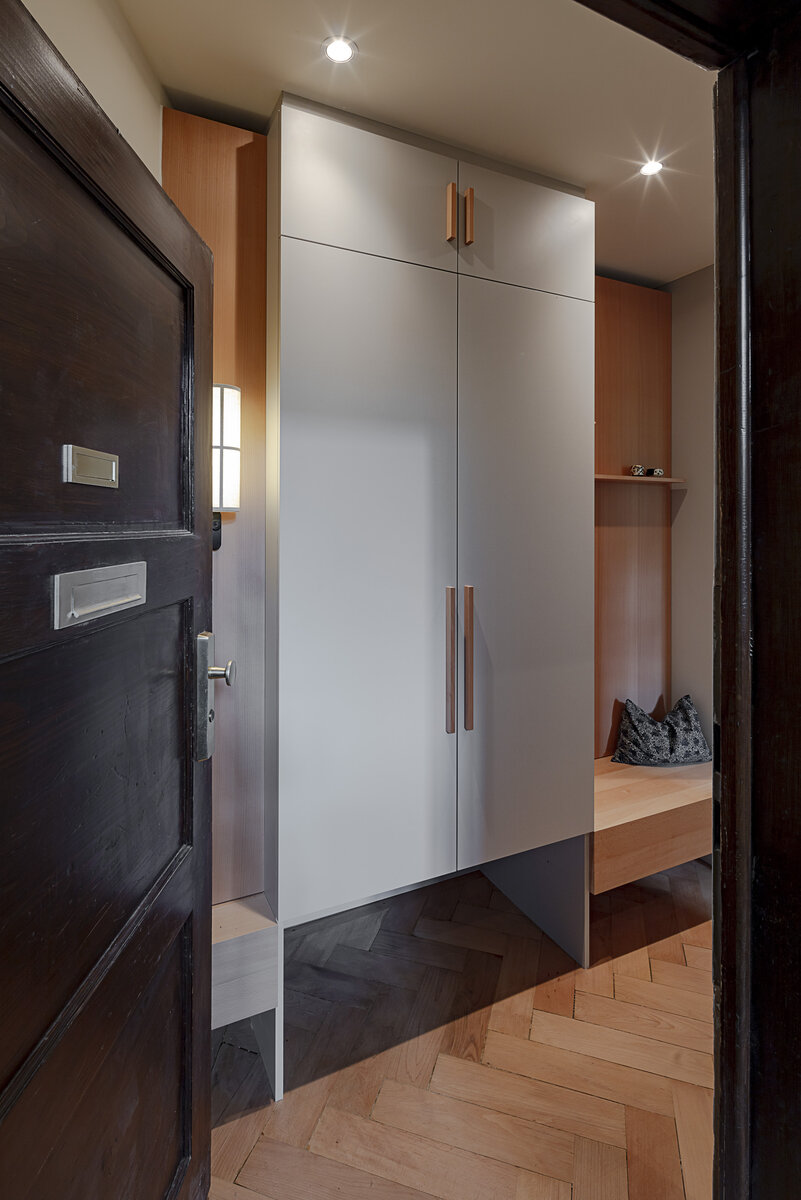 Das Projekt vereint den Charme eines deutschen Altbaus mit minimalistischen Designansätzen, die von der japanischen Ästhetik inspiriert sind. Naturmaterialien und dunkle Akzente schaffen eine harmonische Verbindung zu traditionellen japanischen Elementen. Dabei wurde besonderer Wert darauf gelegt, den Altbau zu sanieren und zu modernisieren, ohne seinen ursprünglichen Charme zu verlieren – so entstand eine stimmige Einheit aus Geschichte und Gegenwart. Die rund 80 Quadratmeter große Wohnung (Baujahr 1925–1927) wurde mit hochwertigen Schreineranfertigungen und neuem Mobiliar ausgestattet. Die Planung erfolgte für ein Ehepaar.